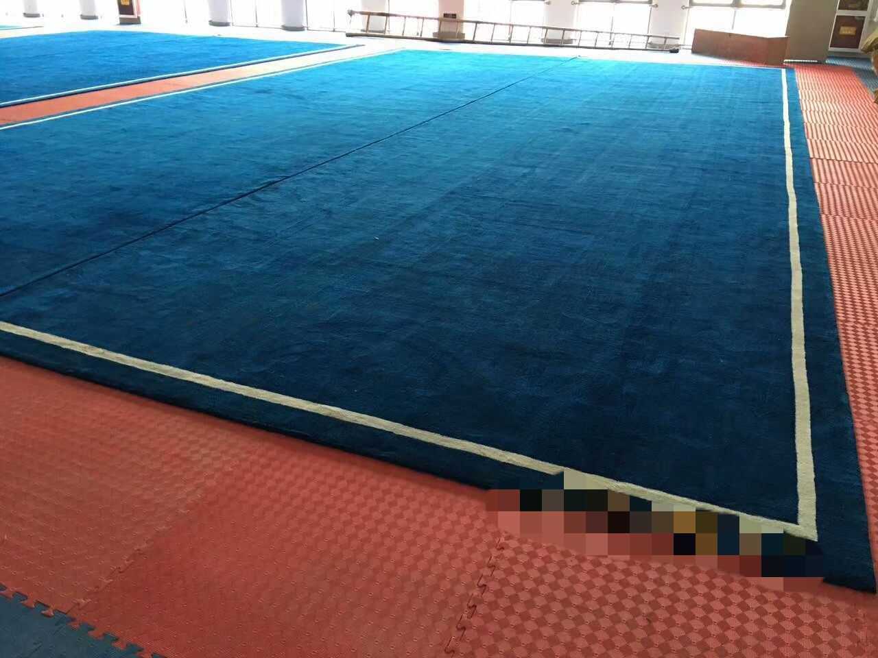 藝術體操地毯:材質采用純進口尼龍六、紗羅布、背膠,規格采用國際標準四幅合一16米*16.5米,絨高0.6cm,克重量900克/平,顏色以淺駝色為主,其他顏色根據客戶需求可以訂做