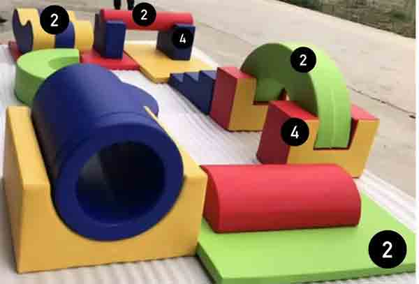 消防游戲B17件套:四節跳箱60X40X60cm、圓桶60X60X60cm、圓桶底托70X60X60cm、墊子120X60X5cm三個、U形底托50X25X35cm兩個、半圓100X50X25cm三個、騎馬柱80X30X30cm、騎馬柱底托50X20X35cm兩個、半圓平衡木60X40X20cm、三步梯60X60X30cm、搖搖船80X60X35cm。